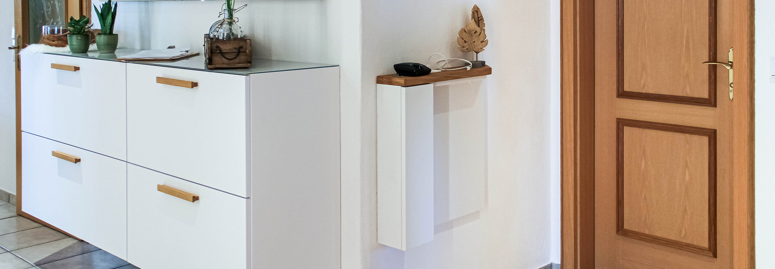 In einem großen Eingangsbereich offenbart sich eine immense Bandbreite an Möglichkeiten um Stauraum, Ordnung und Ablageflächen für Ihre persönlichen Dinge des Alltags zu schaffen. Wir streben aber ebenso danach selbst aus kleinen Räumen das Maximum herauszuholen. Egal ob schmale Eingangsflure, enge Nischen oder nur wenig Stellfläche unter einer Treppe – mit Kreativität, unserem umfangreichen Wissen und modernster Planungssoftware konzipieren wir Garderobenlösungen, passgenau nach Ihren Vorstellungen.